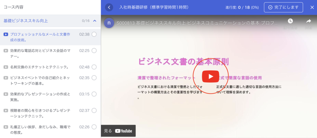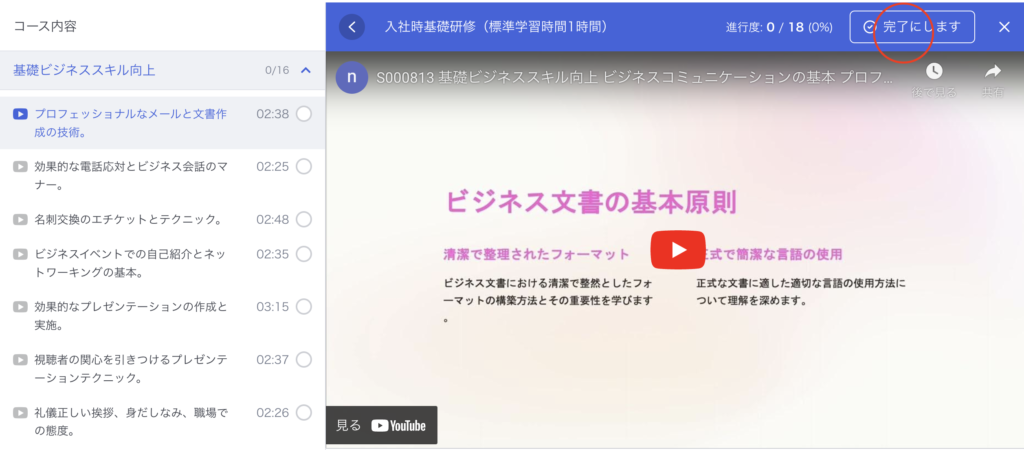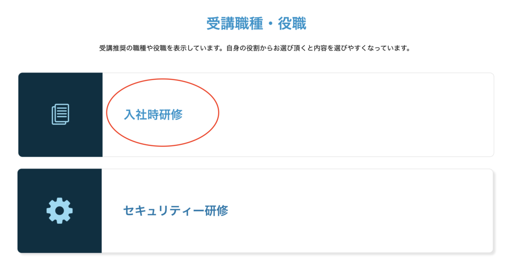 ご自身の働いている役職や職種に合った内容を選んで、コンテンツを選び受講を完了させる